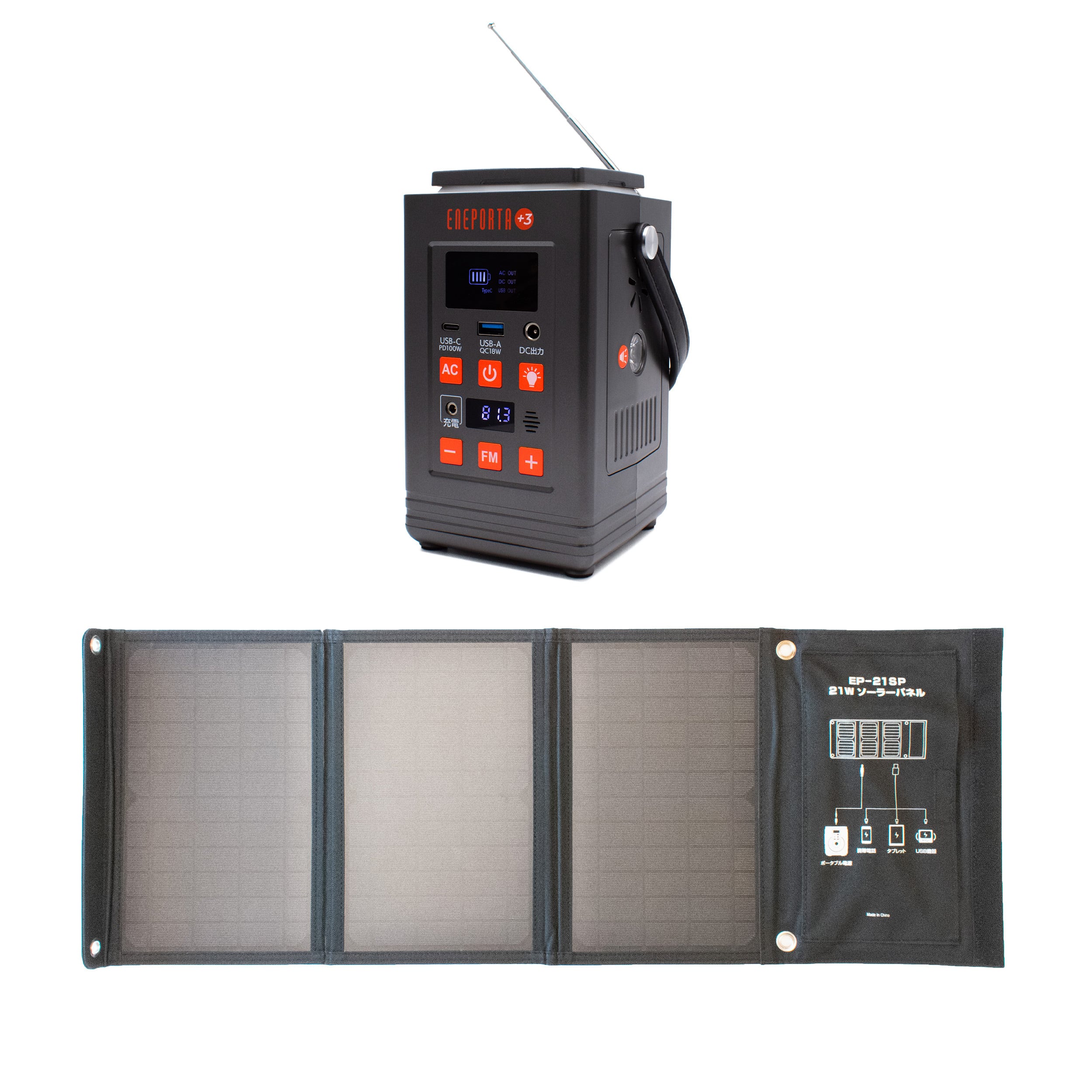 ●商品名/「電力・ライト・ラジオ」すべてがこの1台に 次世代のリン酸鉄バッテリー搭載 簡単操作のあんしん安全ポータブル電源 ENEPORTA+3 (プラススリー)